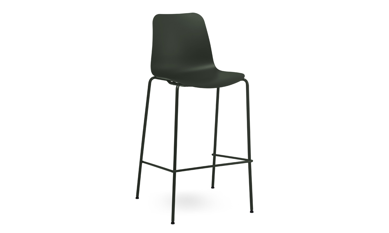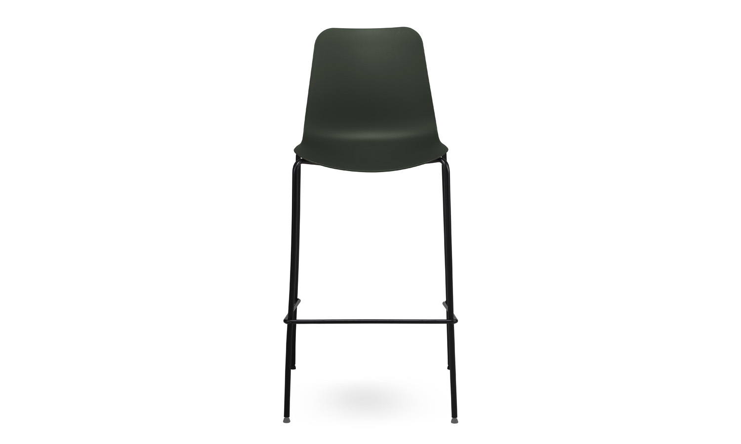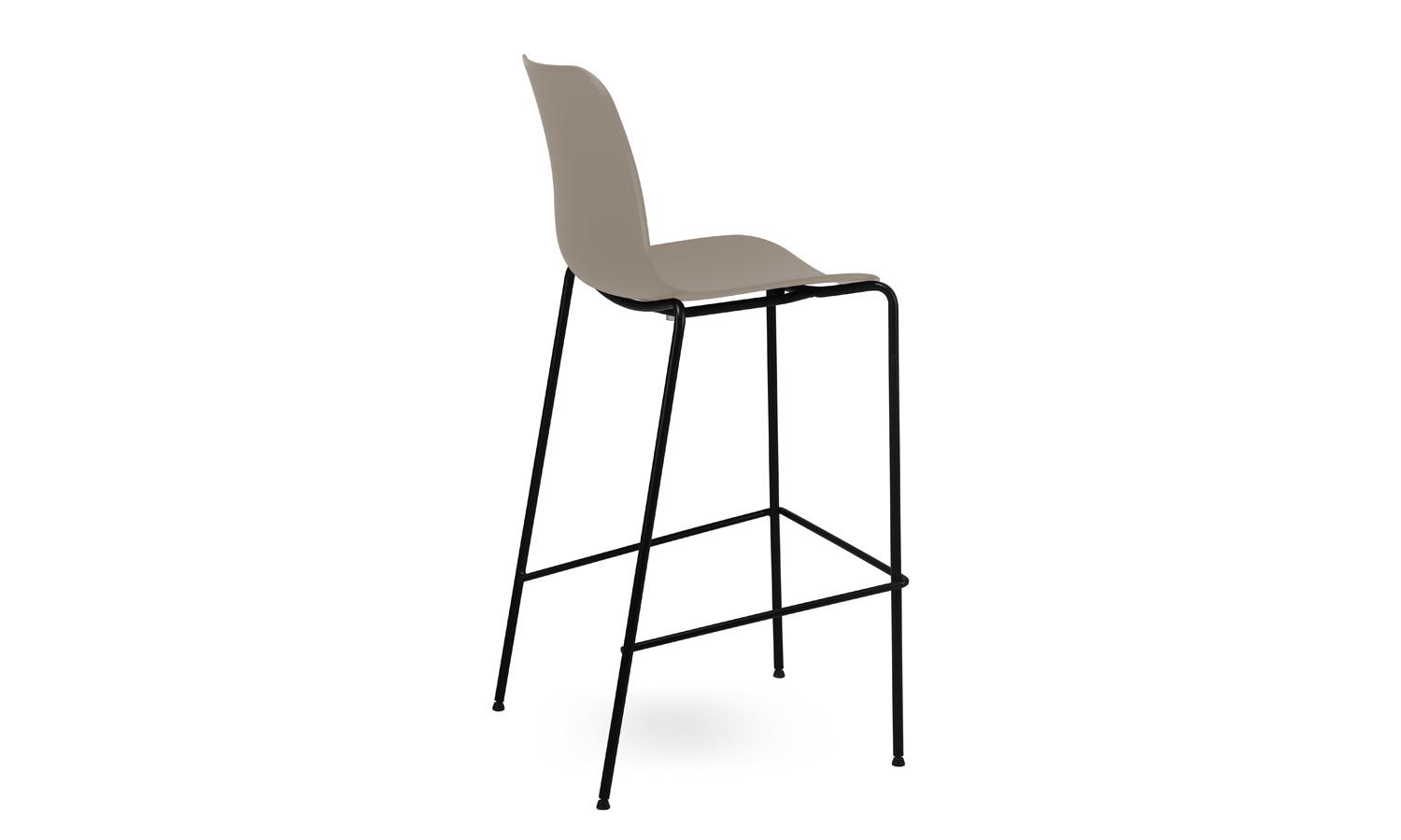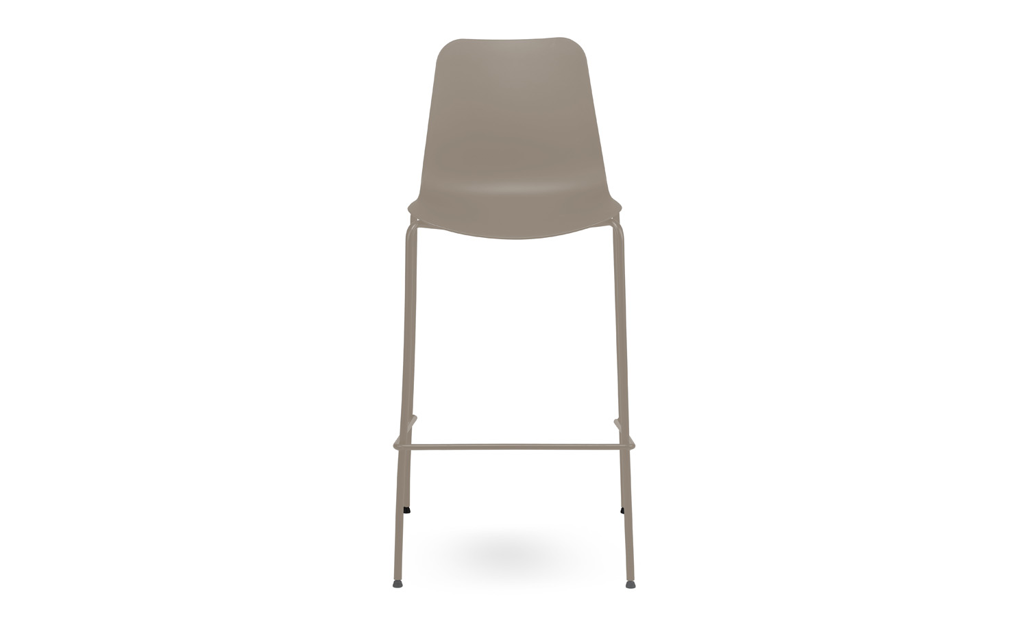 The Evelyn stool features a sleek, simple design with a durable polypropylene shell available in Black, White, Dark Green, Grey, or Taupe. The sturdy sled-style base comes in Black or White, or can be powder-coated to match your chosen shell colour for a seamless, monochromatic look.